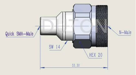 50Ω Quick SMA-Male to N-Male尺寸图