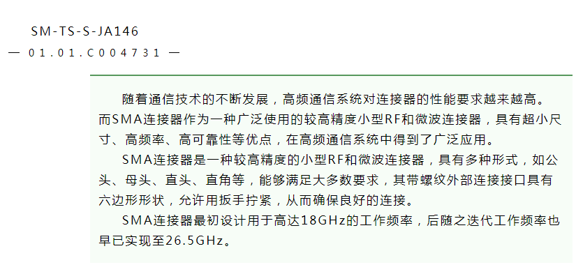 JA146电缆高性能连接方案丨SMA型连接器